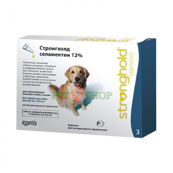 Stronghold (действующее вещество селамектин) - единственный противоблошиный препарат, активный в отношении взрослых блох и их незрелых форм, присутствующих в окружающей среде до начала применения препарата. Он также эффективен против ряда других паразитов: клещ саркоптес, отодектоз - ушной клещ, взрослые особи аскарид, взрослые особи токсокар и анкилостом, профилактика дирофиляриоза (сердечные глисты).